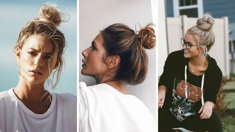- Messy bun – luźno związany kok, który można wykonać w kilka minut. Wystarczy zebrać włosy w kucyk, skręcić je i przypiąć wsuwkami, pozostawiając kilka luźnych pasm.